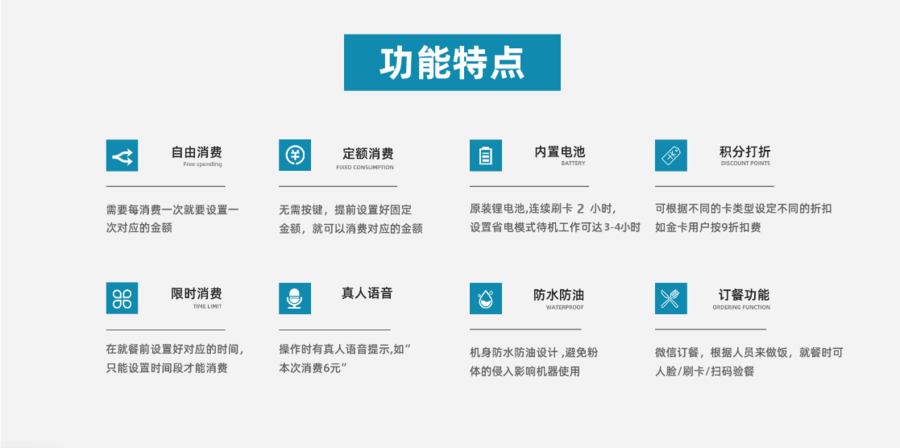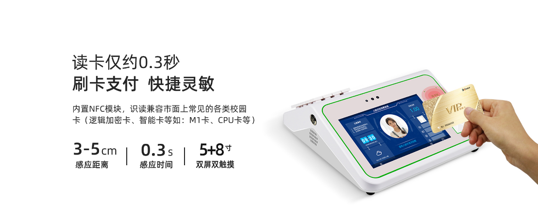 FX2人脸消费机具有刷卡速度快、识别精准,识别准确率高达99.99%以上,万人应用测试无误识别,可以满足校园一卡通、企事业单位一卡通等场景消费使用需求。